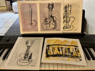 Today, I am honored and humbled to offer for sale pieces from my Listening Wide-Eyed: Limited-Sight Contour Drawings of Musical Instruments series. Between now and early July 10, 2022 you can purchase a piece of one-of-a-kind artwork made specifically for you or a loved one.