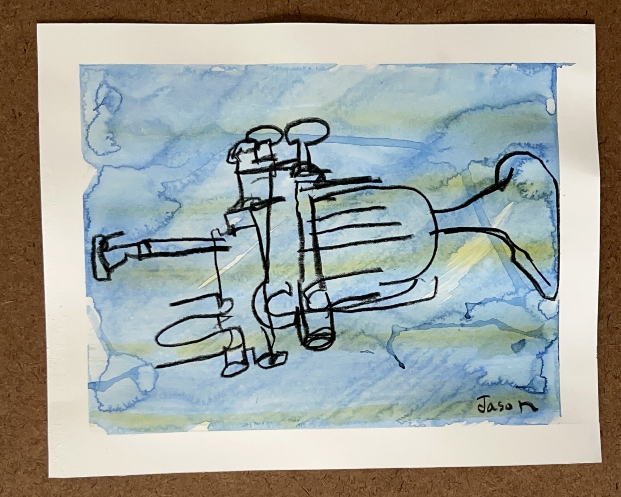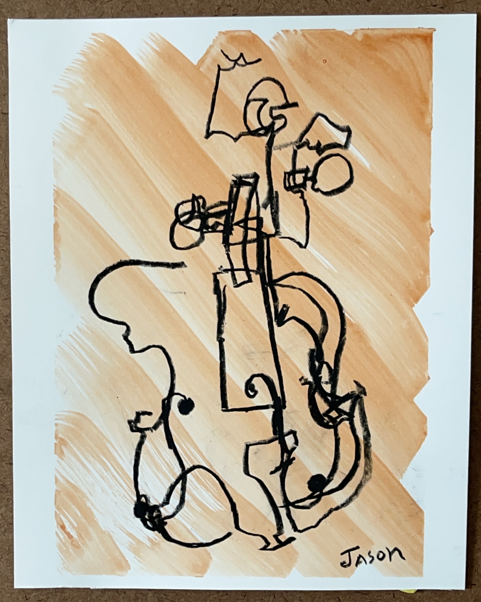 The Listening Wide-Eyed series is an outgrowth of my visual art, musical and mindfulness practices. Each one-of-a-kind piece from Listening Wide-Eyed is created through a limited-sight process, where I make a drawing on a sheet of bristol board without taking my eyes off the subject. I don’t look at the board until I am done drawing. Within the messiness, the structural knowledge and spiritual essence of each instruments expands.
