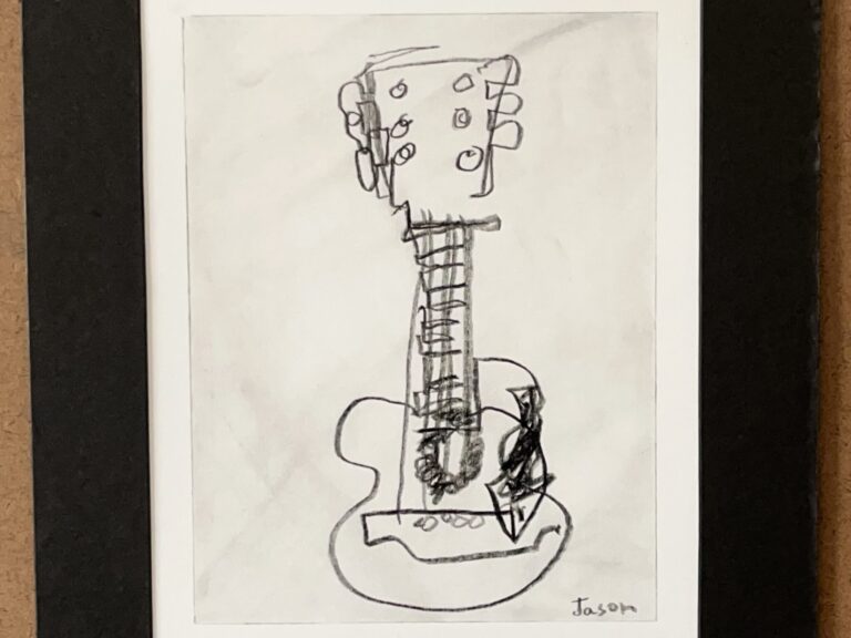 Today, I am honored and humbled to offer for sale pieces from my Listening Wide-Eyed: Limited-Sight Contour Drawings of Musical Instruments series. Between now and early July 10, 2022 you can purchase a piece of one-of-a-kind artwork made specifically for you or a loved one.