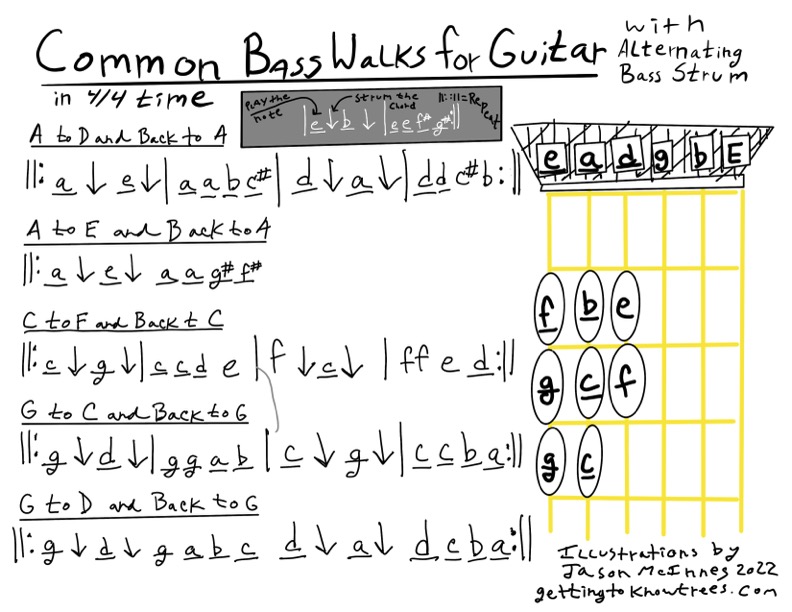A student and I were working on finding ways to play these bass walks more naturally, rather than having to think through them. I made these short videos (all under 2 minutes) with that in mind.
