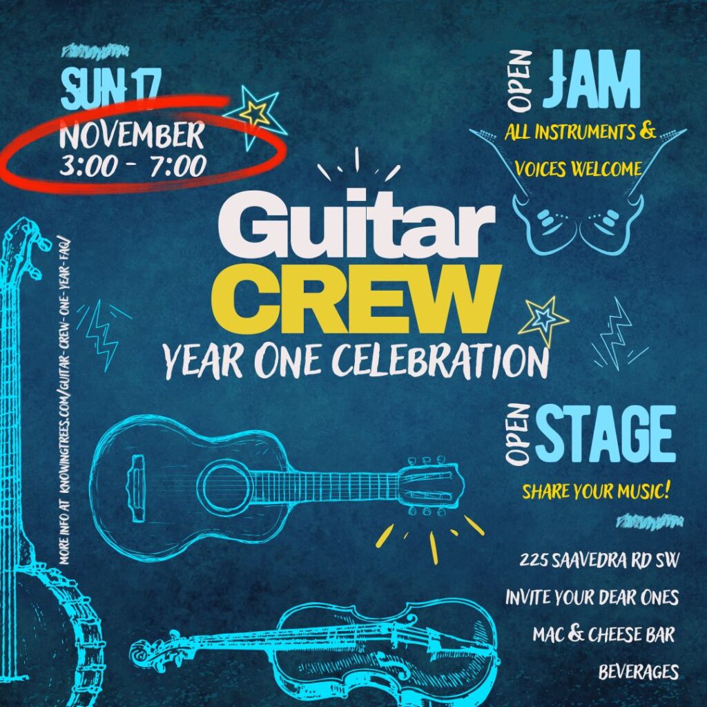 You can learn more about the classes, and related workshops at https://www.knowingtrees.com/guitar-crew/