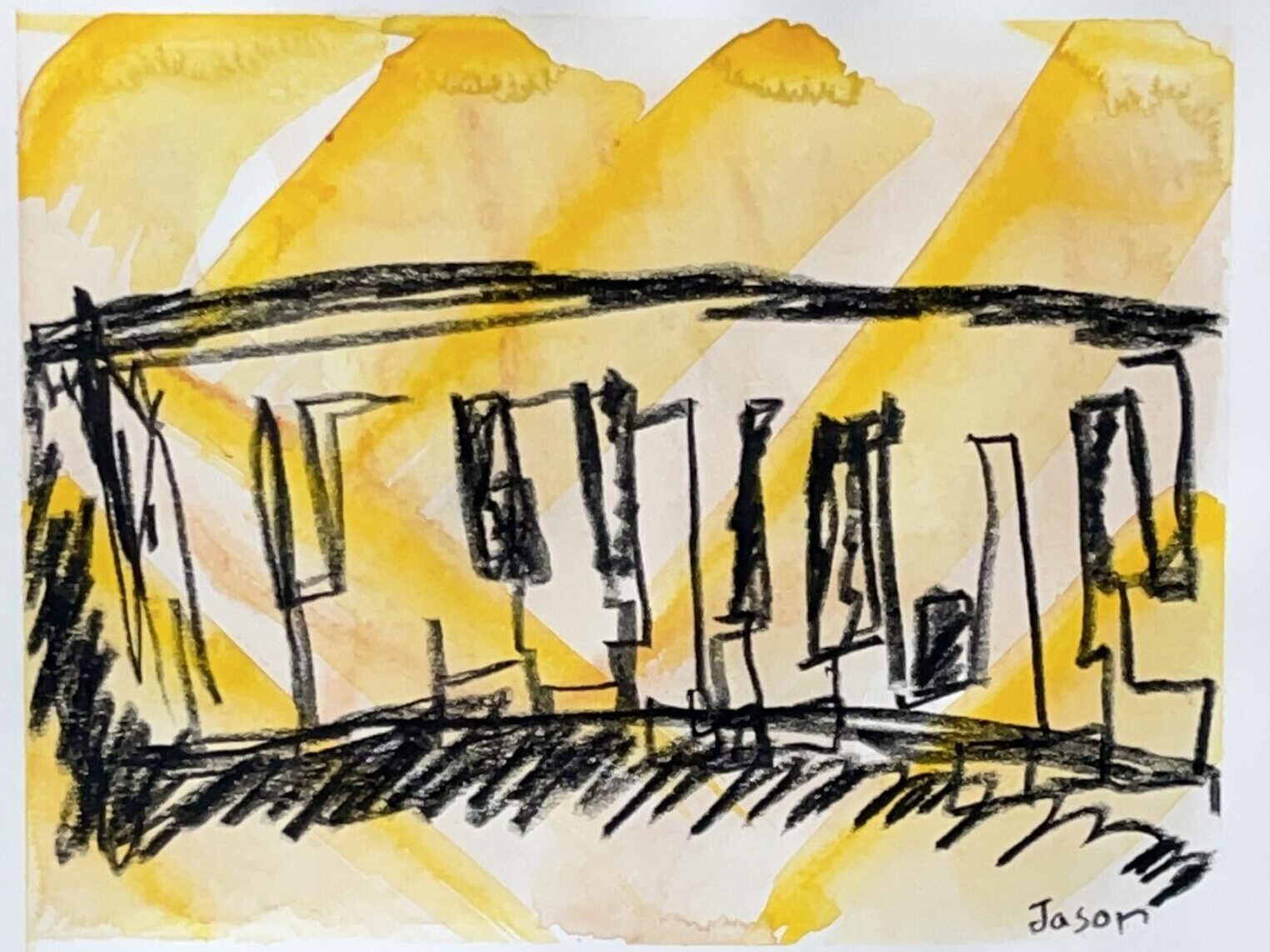 A limited-sight contour drawing of a piano keyboard.