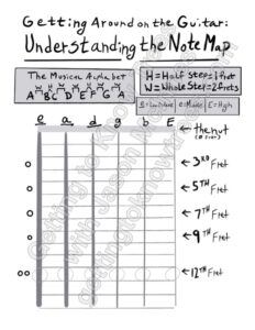 - A pdf of a guitar note map which can be printed multiple times as your understanding of the map grows.
