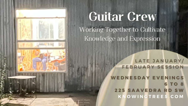 Late January/February Session Wednesdays – 1/24, 1/31, 2/7, 2/14, 2/21,2/28 Guitar Crew is an in-person group guitar class for both beginning and experienced guitar players who find value in balancing collective work and individual expression. In Guitar Crew you will: expand your fluency in the language of music learn by doing and sharing experiences cultivate approaches for increased musical enjoyment and expressiveness. Click “Add to Cart” to register. If class is full, please email Jason at jason@knowingtrees.com to be added to the waitlist. It is important to me to offer these classes at a rate that is affordable for as…