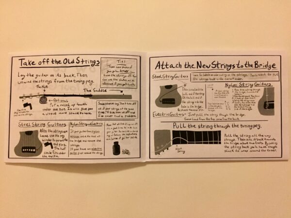 In this zine you’ll be guided in the process of changing your strings and learn about the tools needed to do it.